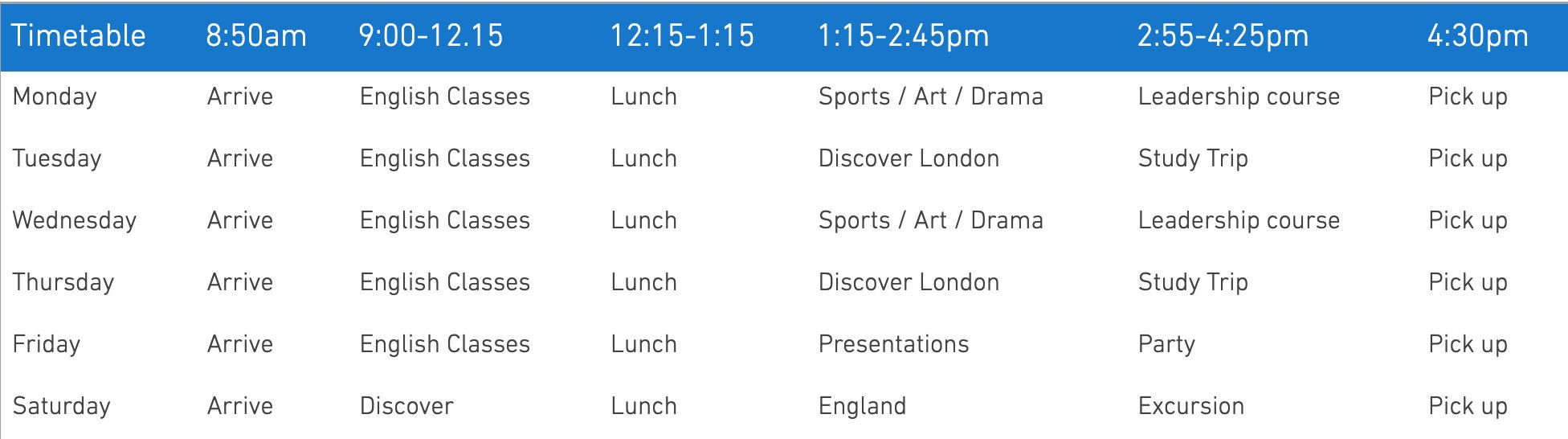 Homestay accommodation: £350 p/w for students aged 12-17 years old. Add door-to-door School Car Service for £250 p/w.