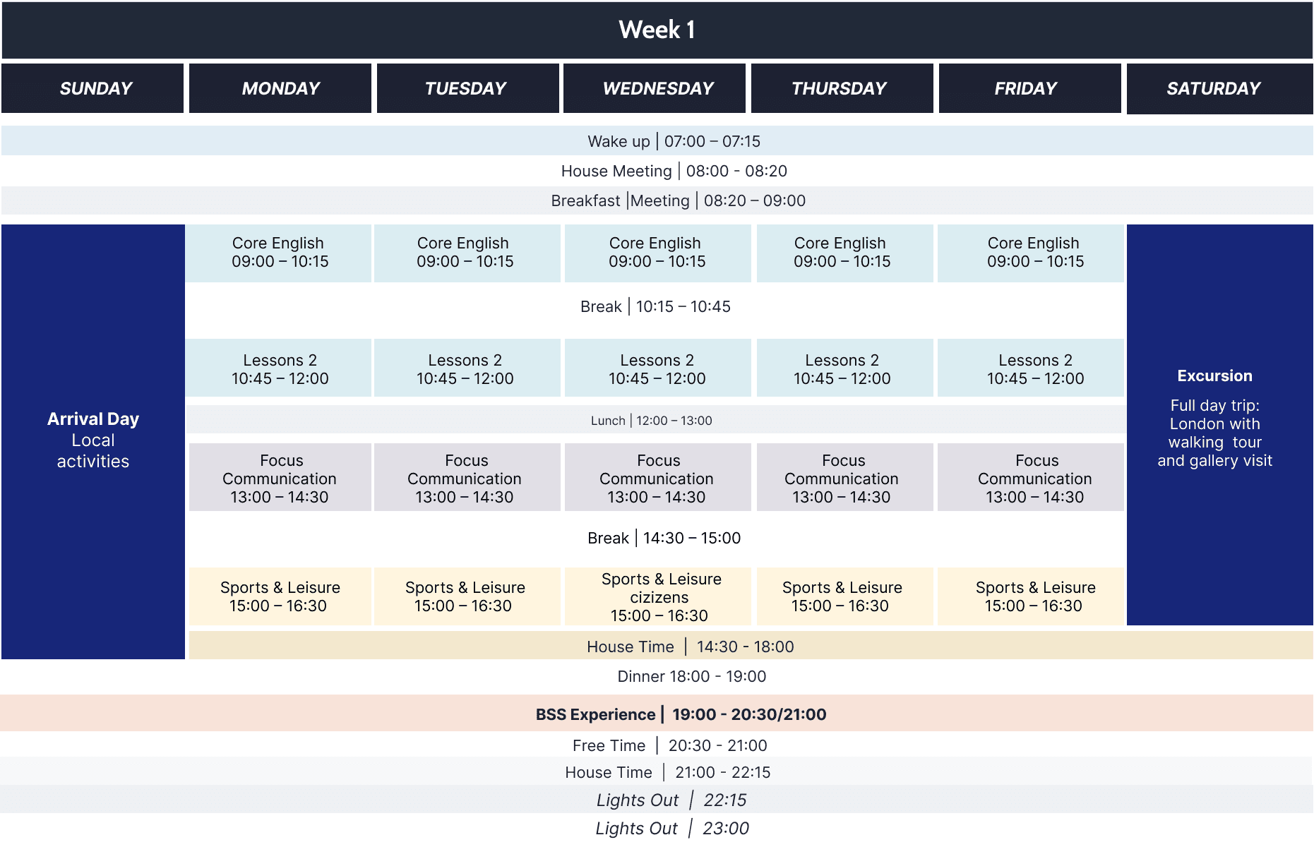 Each day is a balanced blend of structured learning in the morning, cultural excursions or practical workshops in the afternoon, and supervised social activities in the evening.